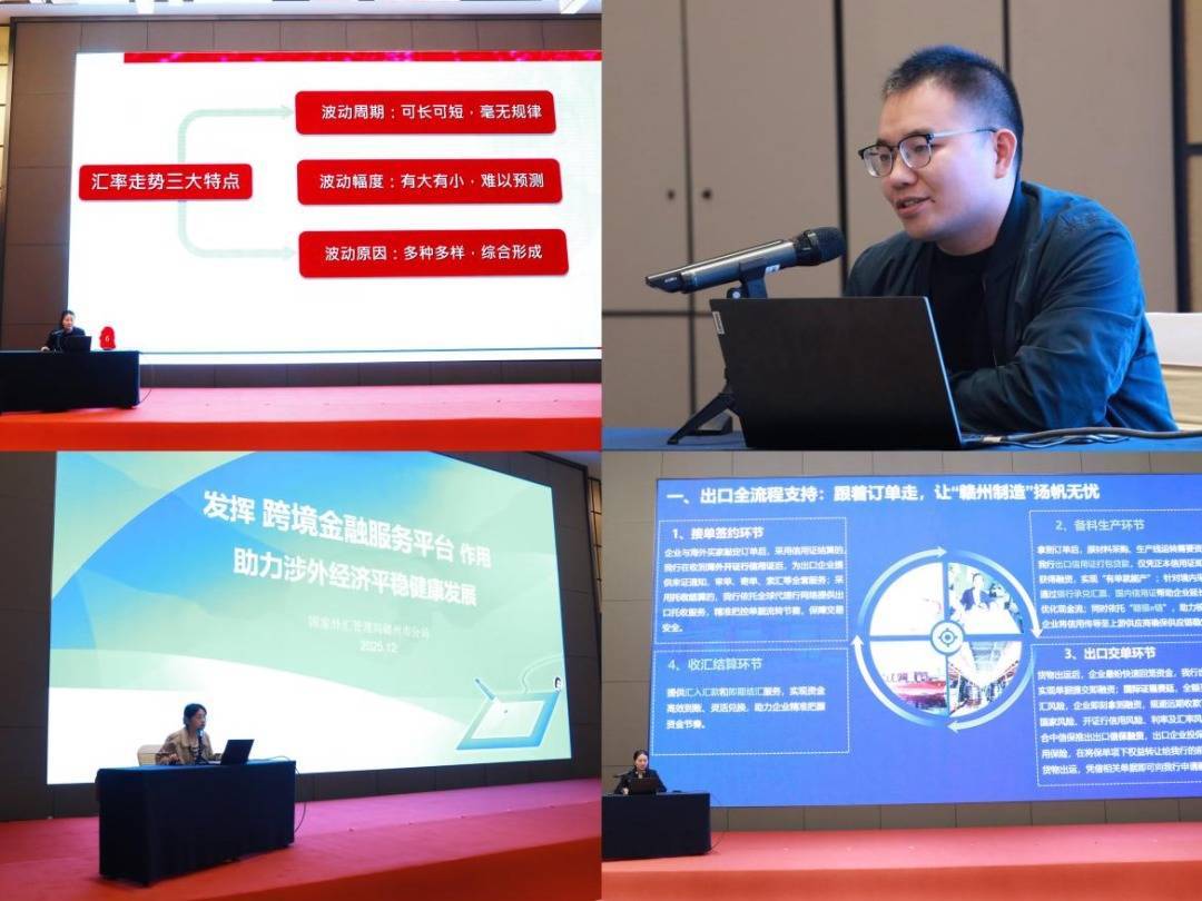 活动现场还开展了专业的外汇政策宣讲,赣州市外汇展业合作机制、赣州银行业务专家围绕贸易外汇便利化政策、跨境金融服务平台场景应用、纺织服装行业汇率避险策略等企业关注的重点内容展开讲解,并为参会企业现场答疑解惑,同时开展跨境人民币、企业名录登记等政策宣传,切实解决企业在跨境业务中遇到的堵点难点。